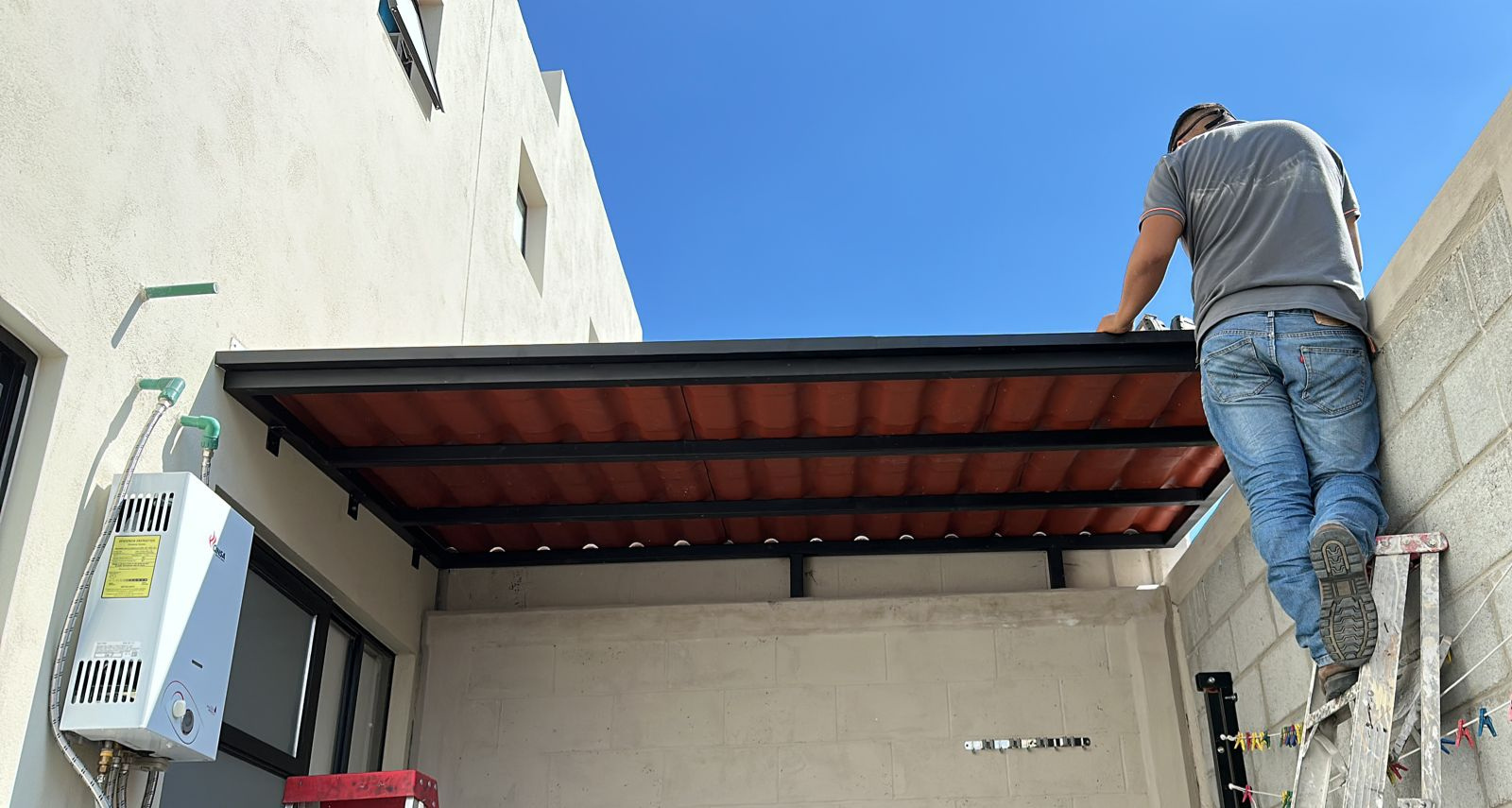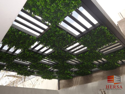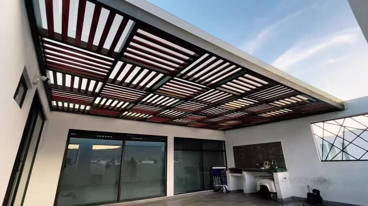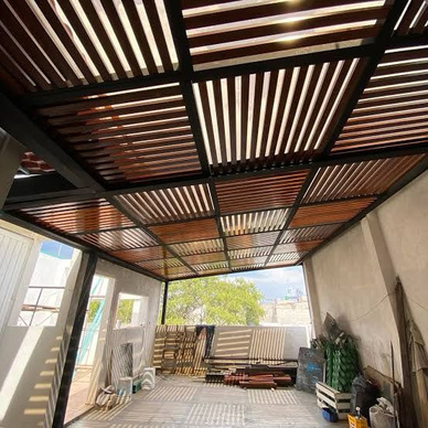 Pérgola fabricada en acero y madera que le dará un toque elegante y moderno a tu casa