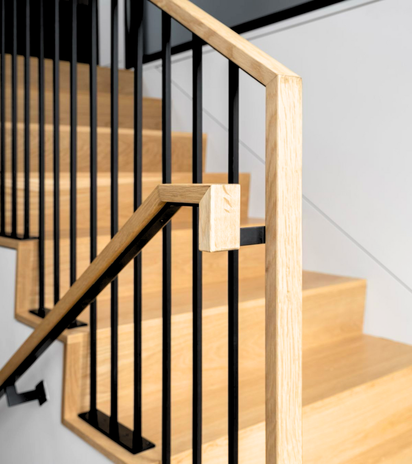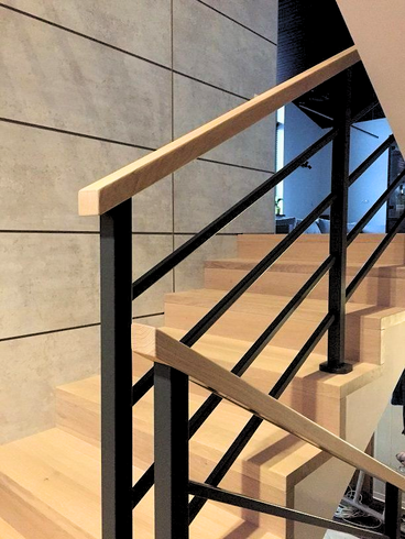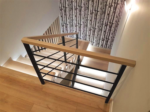 Barandales en acero con toques en madera que le dará un toque elegante y moderno a tu casa.